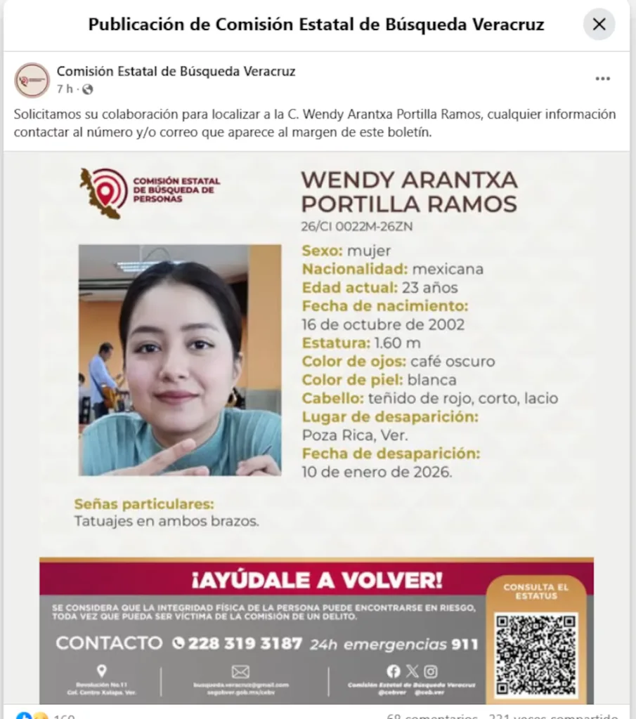 La madre de Wendy difundió un mensaje en redes sociales pidiendo ayuda para localizarla: “Familia, amigos y conocidos, ayúdenme a compartir esta imagen. Ella es mi hija y está desaparecida desde anoche”.