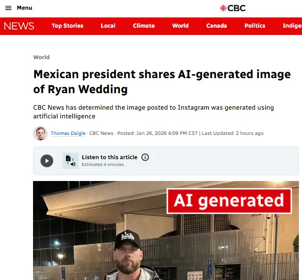 Lo que se presentó como prueba terminó convertido en un escándalo internacional. El medio canadiense CBC News verificó que la foto era falsa, generada con inteligencia artificial y difundida desde una cuenta de Instagram apócrifa. El hallazgo abrió un debate incómodo: ¿hasta dónde puede llegar un gobierno al usar imágenes manipuladas para sostener su narrativa política?