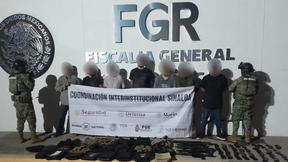 En un fraccionamiento al noroeste de la capital sinaloense, la Secretaría de Marina (Semar) y el grupo interinstitucional “Todos por Sinaloa” respondieron a una denuncia anónima sobre la presencia de civiles armados. Al llegar, fueron recibidos con disparos. El intercambio de fuego terminó con siete personas detenidas —seis hombres y una mujer—, presuntamente ligadas a Los Chapitos, la facción de Iván Archivaldo y Jesús Alfredo Guzmán Salazar.